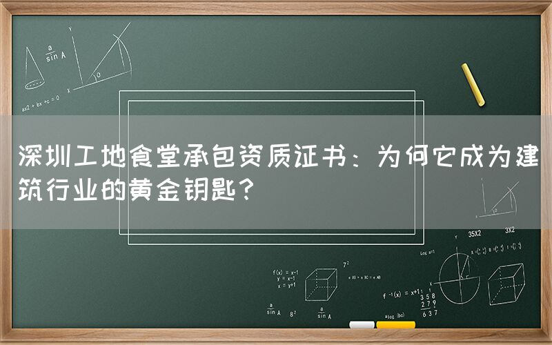 深圳,作为中国改革开放的前沿城市之一,建设成就斐然。其快速发展的背后,隐藏着一个不为人知的行业秘密:工地食堂承包资质证书,被誉为建筑行业的"黄金钥匙"。