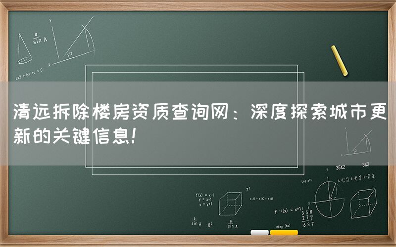随着城市化进程的加快,城市更新成为解决旧城区发展瓶颈的重要手段。在中国各地,包括广东省清远市,拆除老旧楼房是推动城市更新的重要一环。本文将深入探讨清远市拆除楼房的资质查询网,揭示其背后的关键信息。