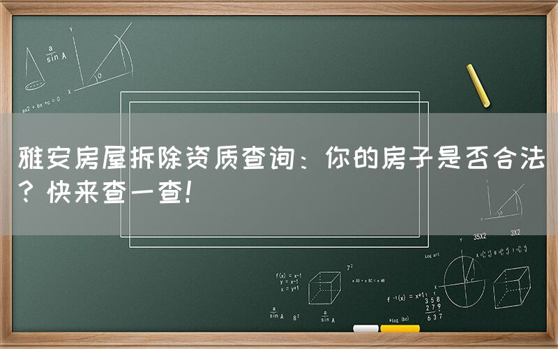 在雅安进行房屋拆除之前,业主或者开发商首先需要确保自己的房屋是否符合拆除条件,这涉及到城市规划、土地使用规划、环保要求等多方面的因素。还需要核实拆除的具体程序和法律责任。在这个过程中,房屋拆除资质查询成为不可或缺的一环。