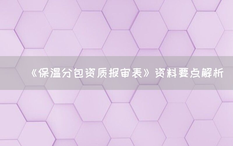 上述资料是申请保温分包资质审核的主要依据,因此申报单位需要将这些资料进行完善并做好准备,以保证申请能够顺利进行。