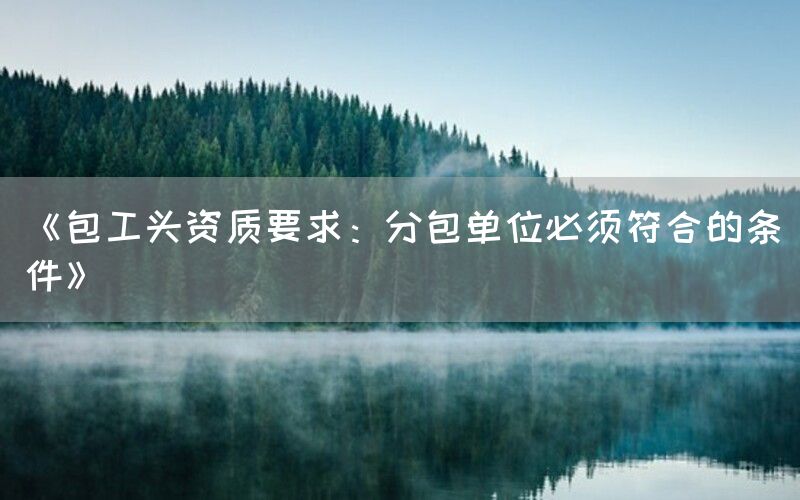 建筑工程涉及面广、施工工艺复杂、安全风险高,不具备资质的企业难以保证项目施工和管理的质量和效益。分包单位必须符合的条件是建筑企业获取包工头资质的前提条件。获取资质证书是企业开展业务、承接项目的重要准入条件,是企业获取合法身份的重要证明文件。