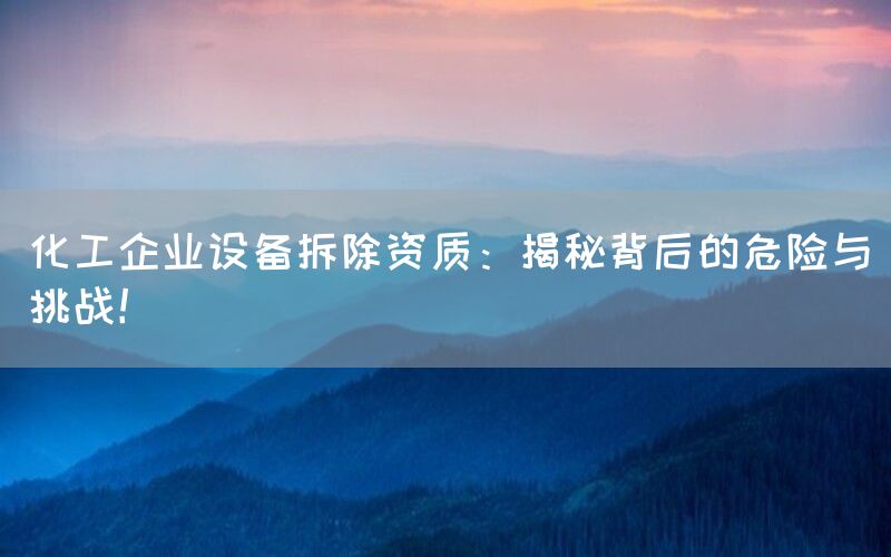 化工企业设备拆除资质:揭秘背后的危险与挑战!