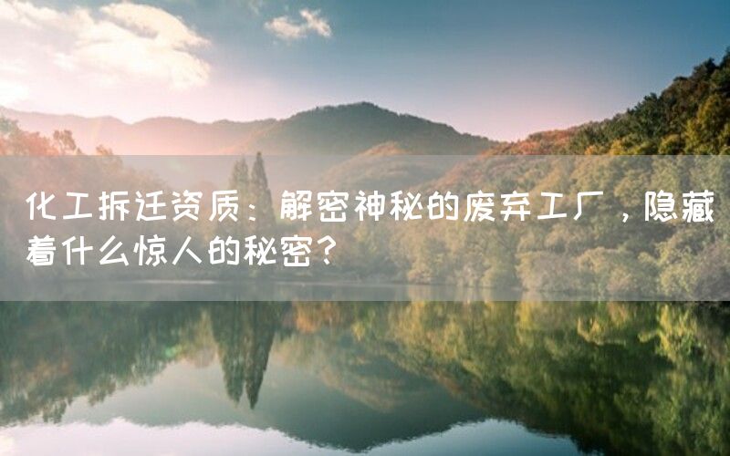 废弃工厂背后隐藏着许多神秘与秘密。从历史背景到环境影响,从危险物质到未知秘密与研究价值,每一个方面都需要我们深入探索并加以关注。作为化工拆迁资质持有者,在进行相关项目时务必合作专业团队,并注重环保问题。只有这样才能确保安全、可持续发展,并揭示出废弃工厂所隐藏的真相。
