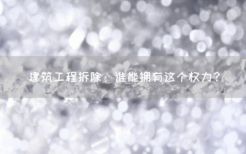建筑工程拆除是指对已经存在的建筑物或结构进行拆除、清理和处理的过程。在这个过程中,涉及到一系列权力和责任的分配问题。谁能够拥有建筑工程拆除的权力呢?下面将从不同角度进行探讨。