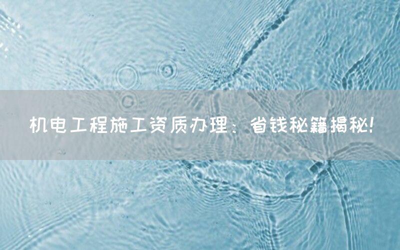 在机电工程领域,拥有合适的施工资质是进行项目开展的基础。,办理机电工程施工资质往往需要一定的费用和时间投入。将为您揭示一些省钱的秘籍,帮助您更加高效地办理机电工程施工资质。
