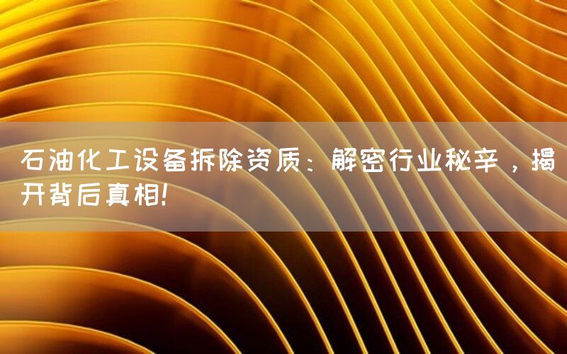 石油化工设备拆除是一个涉及复杂技术和严格安全要求的领域。在这个行业中,掌握合适的资质非常重要。将深入探讨石油化工设备拆除资质的相关内容,并揭示其背后的真相。
