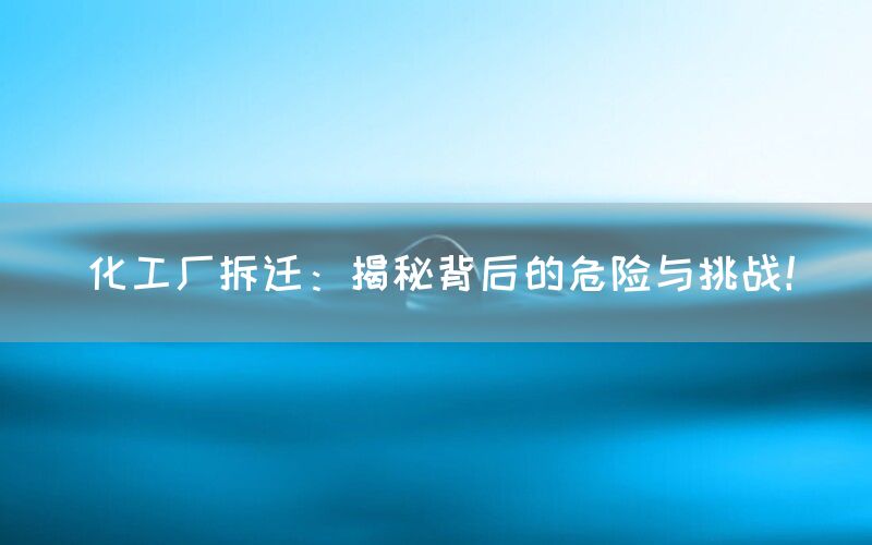 化工厂拆迁是一个复杂而危险的过程,涉及到大量有害物质和环境污染问题。本文将深入探讨化工厂拆迁背后的危险与挑战,并分析其中的专业性问题。