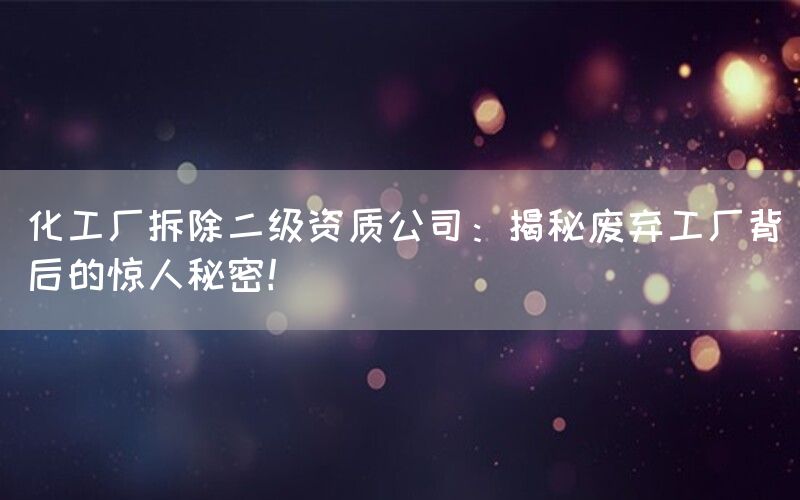 在现代化工产业发展中,随着技术的进步和市场需求的变化,许多旧式化工厂逐渐失去竞争力。这些废弃工厂不仅对环境造成潜在威胁,还可能存在一些惊人的秘密。本文将深入探讨化工厂拆除过程中所揭示出来的背后故事。