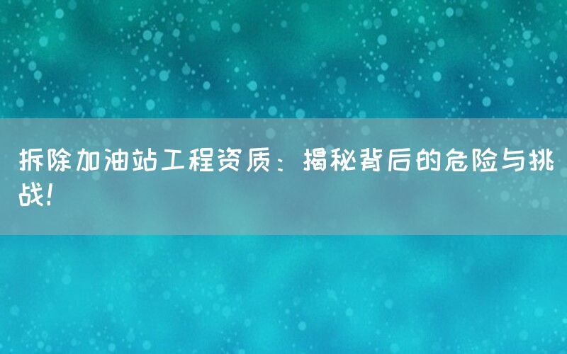 拆除加油站工程是一项涉及安全和环境风险的复杂任务。在进行这样的工程之前,必须获得相应的资质才能合法进行操作。本文将深入探讨拆除加油站工程资质所面临的危险和挑战,并介绍巴洛仕集团有限公司提供的一站式解决方案。