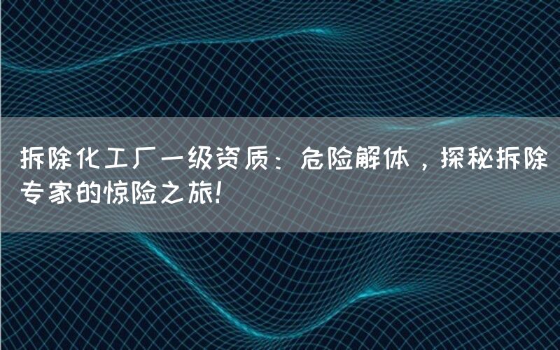 化工厂是现代社会中不可或缺的重要产业,当这些化工厂需要关闭或迁移时,拆除过程就变得异常复杂和危险。为了确保安全和环境保护,需要具备一级资质的专业拆除团队进行操作。本文将带您探秘拆除专家在危险解体过程中所面临的挑战与风险。