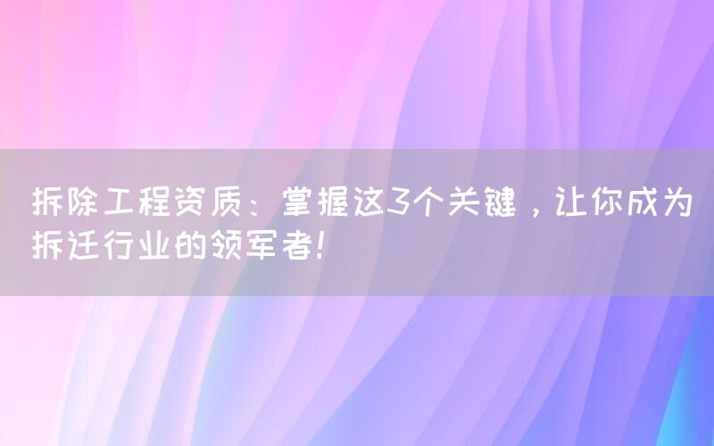 拆除工程是指对建筑物、设施或其他结构进行拆除、清理和处理的过程。在这个行业中,拥有合适的资质是非常重要的,它不仅能够确保工作安全和高效进行,还能提升企业竞争力。本文将介绍拆除工程资质的关键点,并探讨如何成为这个行业的领军者。