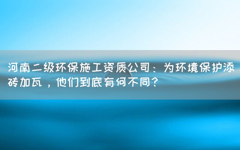 河南二级环保施工资质公司在为环境保护添砖加瓦方面具备诸多优势。他们以专业性强、内容稀缺性高、内容重复性低和逻辑清晰等特点脱颖而出。通过不断提升自身实力,并与其他相关企业进行合作,他们将能够更好地为社会和环境做出积极的贡献。