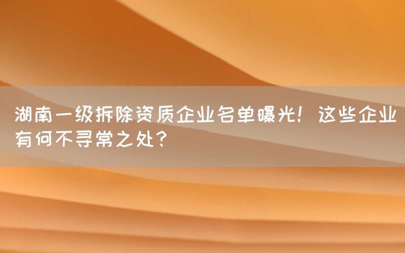近日,湖南省一级拆除资质企业名单曝光,引起了广泛关注。这些企业在拆除行业中有着不寻常的地位和特点,其所提供的服务涵盖了资质合作、项目联营、资质分立及加盟等多个方面。本文将深入探讨这些企业的不寻常之处,并解析其背后的原因。