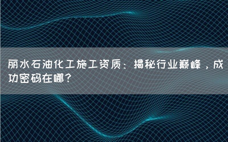 在丽水地区从事石油化工施工领域,如何获取并提升自身的施工资质呢?本文将从多个角度深入探讨,并揭示成功密码所在。