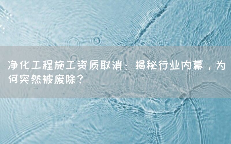 近期,净化工程施工资质取消的消息引起了广泛关注和讨论。这一突然的举措让很多人感到困惑和疑惑,为什么会出现这样的情况?本文将深入探讨净化工程施工资质取消背后的内幕,并分析其影响。
