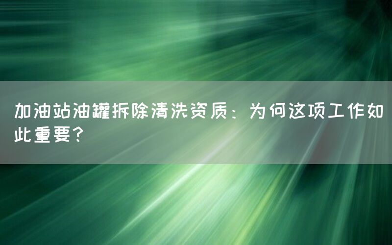 加油站是我们日常生活中必不可少的设施之一,它们为我们提供了方便快捷的燃料供应。随着时间的推移和使用量的增加,加油站内部的油罐会积累大量污垢和废弃物。定期进行加油站油罐拆除清洗工作变得至关重要。