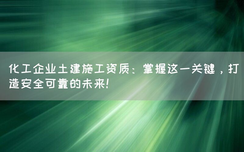 化工企业在进行土建施工时,拥有合适的资质是至关重要的。这不仅能够确保施工过程中的安全可靠,还能提高项目的质量和效率。掌握化工企业土建施工资质成为了打造安全可靠未来的关键。