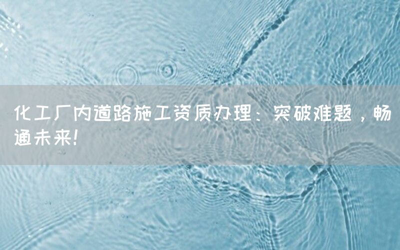 化工厂作为重要的生产基地和经济支柱,其内部道路的施工与维护是确保生产运营顺利进行的关键环节。在进行道路施工时,往往需要办理相应的资质手续,以确保合规性和安全性。本文将探讨化工厂内道路施工资质办理的重要性、难点及解决方案。