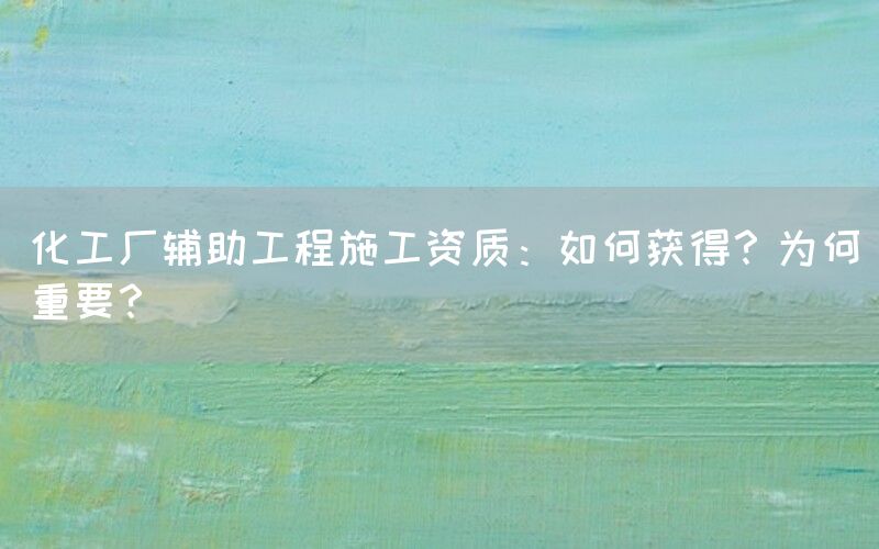 化工厂辅助工程施构资质的获得对于企业来说至关重要。它不仅能够确保企业合法执业,提高竞争力和信誉度,还能够确保施工过程安全可靠。企业在进行相关项目时应积极申请并获得相应资质证书。