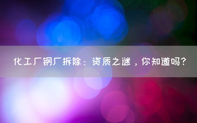 在现代社会中,随着城市建设的不断发展,一些老旧的化工厂和钢厂逐渐失去了使用价值。为了保护环境和提升城市形象,拆除这些废弃工厂成为当务之急。在进行拆除工作时,涉及到各种资质问题,这给相关部门带来了很大的挑战。