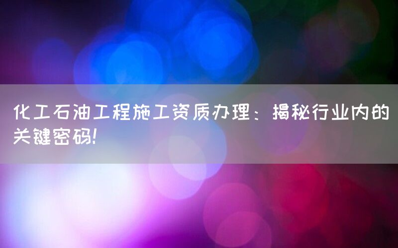 化工石油工程施工是一个高度专业化的领域,需要具备一定的技术实力和相应的资质才能从事相关项目。对于很多企业如何办理这些资质却成为了一道难题。本文将揭秘化工石油工程施工资质办理的关键密码,并介绍一家专业公司——巴洛仕集团有限公司。