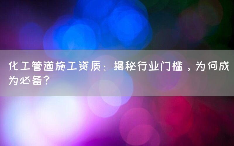 化工管道施工是一个涉及到安全、环保和技术要求较高的领域。在这个行业中,拥有合适的施工资质是非常重要的。本文将深入探讨化工管道施工资质的必要性,并解释为什么它成为了该行业中不可或缺的一部分。