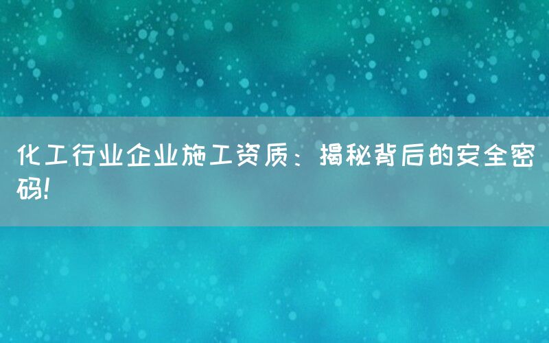化工行业企业施工资质:揭秘背后的“安全密码”