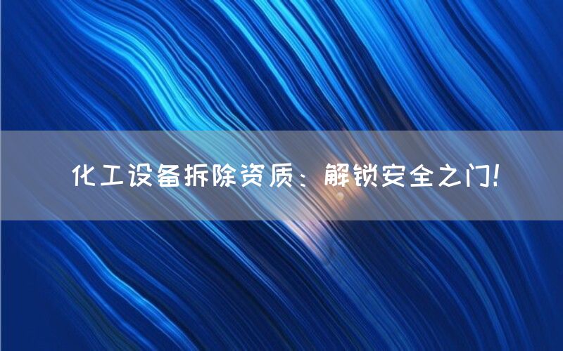 什么是化工设备拆除资质?化工设备拆除资质是指企业或个人在进行相关操作时所需具备的合法证书或许可。这些证书通常由政府部门颁发,以确保操作符合相关法律法规,并且具有足够的专业知识和技术能力来处理潜在危险。