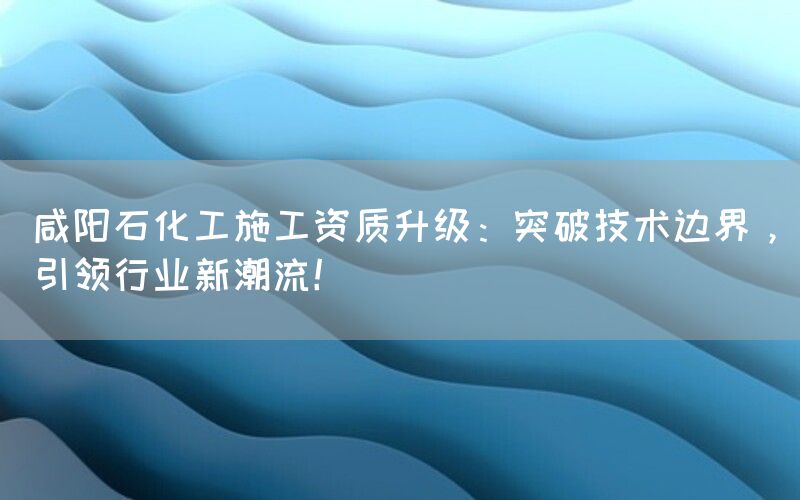 在当前竞争激烈、变革频繁的时代背景下,咸阳地区的一家石化企业——咸阳石化公司通过资质升级,成功突破了技术边界,并引领行业新潮流。这一举措不仅为企业的可持续发展提供了有力支撑,还为整个行业的进步和发展做出了积极贡献。