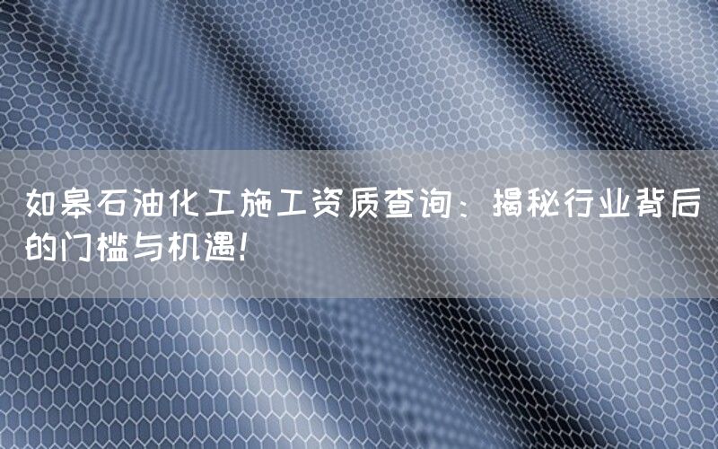 石油化工行业作为我国重要的基础产业之一,对于经济发展和能源安全具有重要意义。而在这个庞大而复杂的行业中,如皋石油化工施工资质是企业进入市场、参与竞争的重要准入条件之一。本文将深入探讨如皋石油化工施工资质的查询过程,并揭示其背后所隐藏的门槛和机遇。