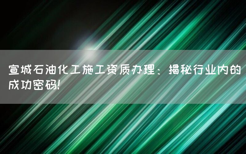 石油化工行业是我国经济发展中重要的支柱产业之一,而在这个行业中,宣城地区以其丰富的资源和优越的地理位置成为了众多企业投资兴建项目的首选。在进行石油化工施工项目时,企业需要具备相应的施工资质才能合法开展相关活动。本文将揭秘宣城石油化工施工资质办理过程中的成功密码。