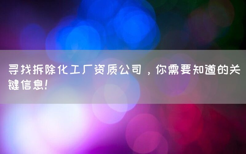 寻找拆除化工厂资质公司是一项重要而复杂的任务。通过了解上述关键信息,并进行综合评估,您将能够选择到一个具备专业知识、经验丰富、安全可靠并符合您需求的拆除化工厂资质公司。