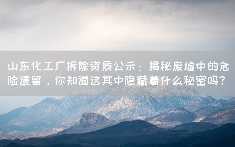 在山东化工厂拆除资质公示背后隐藏着许多秘密和挑战。从废弃物处理难题到环境污染隐患再到安全隐患存在,都需要我们付出努力去解决。希望通过本次拆除行动能够引起更多人对于环保问题和危险遗留物处理的关注,推动我们建设更加美好的未来。