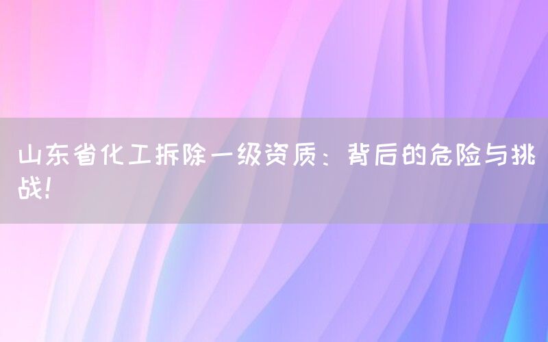 化工行业是一个高风险、高危害的行业,因此在进行相关项目时需要拥有相应的资质。近期山东省化工企业面临着一个前所未有的挑战——拆除一级资质。这个问题引起了广泛关注,并带来了许多深层次的思考。
