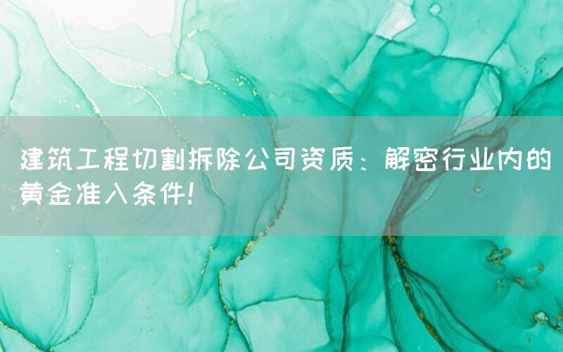 建筑工程切割拆除是一项专业且具有一定风险的行业,需要具备相应的资质才能合法经营。在中国,建筑工程切割拆除公司需要符合一系列的准入条件,以确保施工安全、保护环境和维护市场秩序。本文将深入探讨建筑工程切割拆除公司资质的要求及其背后的意义。
