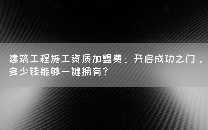 在进行建筑工程施工资质加盟之前,我们首先需要了解加盟费用。具体的加盟费用因不同机构或公司而异,但通常包括以下几个方面:
