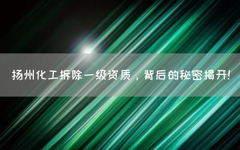 近年来,扬州化工行业发展迅猛,但在这个快速发展的过程中,也不乏一些企业因为各种原因需要拆除自己的一级资质。这其中隐藏着怎样的秘密呢?本文将深入探讨扬州化工拆除一级资质背后的真相。