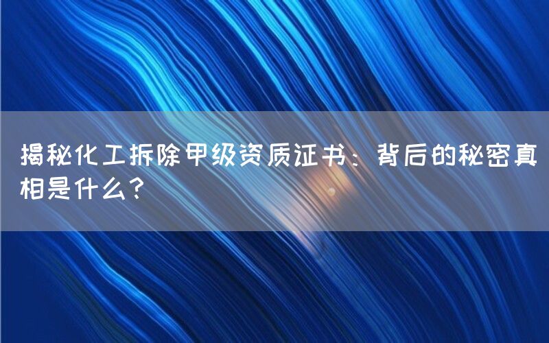 化工拆除甲级资质证书是指在中国的化工行业中,具备最高等级认可和评定标准的一种资质证书。获得该证书意味着企业在技术实力、管理水平、安全控制等方面都达到了国家规定的要求,并且能够独立承接重大化工拆除项目。近年来有关该证书存在问题和争议的声音逐渐增多,引发了人们对其背后真相的好奇与探索。