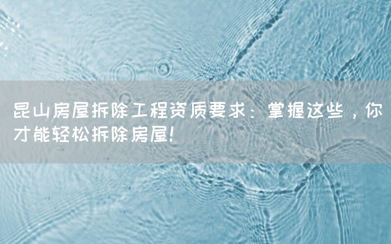 在进行昆山房屋拆除工程之前,掌握相关的资质要求是非常重要的。只有具备相应的资质,才能够合法、安全地进行房屋拆除工作。本文将介绍昆山房屋拆除工程所需的资质要求,帮助您轻松完成这项任务。