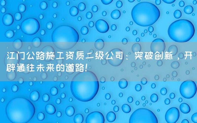 公路建设是现代交通基础设施建设的重要组成部分,对于一个地区的经济发展和社会进步起着至关重要的作用。而在公路建设中,施工公司扮演着关键角色。江门公路施工资质二级公司作为一家具备丰富经验和专业技术的企业,在这个领域中不断突破创新,为我们开辟了通往未来的道路。