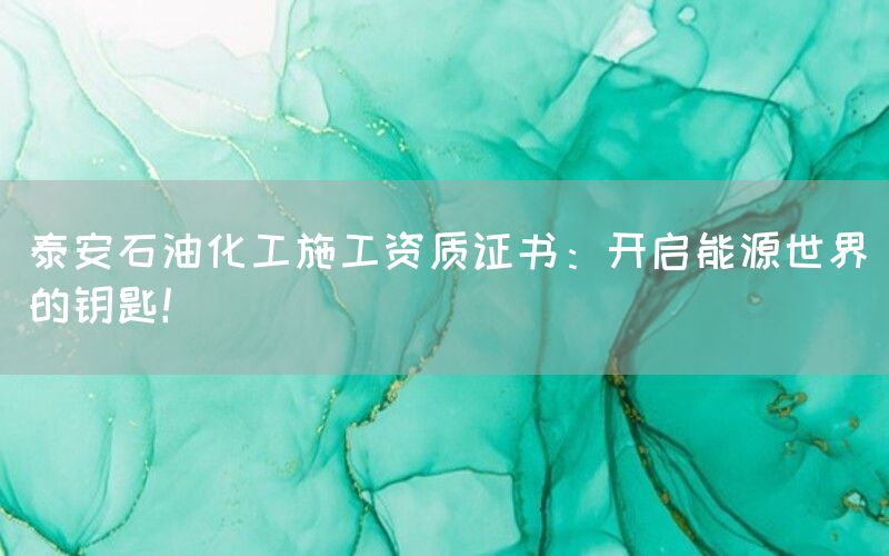 石油化工行业作为现代社会不可或缺的重要产业之一,承担着能源供应和化学品生产等重要任务。而在这个庞大而复杂的行业中,泰安石油化工施工资质证书无疑是企业开启能源世界的钥匙。