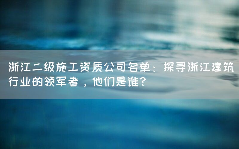 浙江省作为中国经济发展最活跃的地区之一,建筑行业在其中扮演着重要角色。在这个庞大而竞争激烈的市场中,有一些公司凭借其卓越的实力和声誉成为了行业的领军者。他们不仅拥有二级施工资质,还以其专业性、创新性和高质量服务脱颖而出。