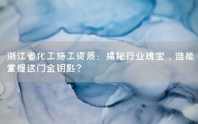 化工行业是一个关乎人类生活和经济发展的重要领域,而在浙江省,拥有一项化工施工资质可以说是掌握了一把“金钥匙”。这个资质不仅代表着企业的实力和信誉,更意味着在竞争激烈的市场中占据优势地位。究竟什么是浙江省化工施工资质?又有哪些企业能够获得这个行业瑰宝呢?让我们来深入了解。