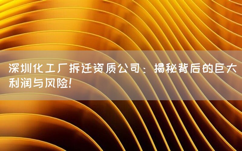 深圳化工厂拆迁是一个涉及利益众多的复杂项目,在其中存在巨大利润与风险并存。深圳化工厂拆迁资质公司通过提供专业服务帮助企业解决各种问题,并获取相应利润。