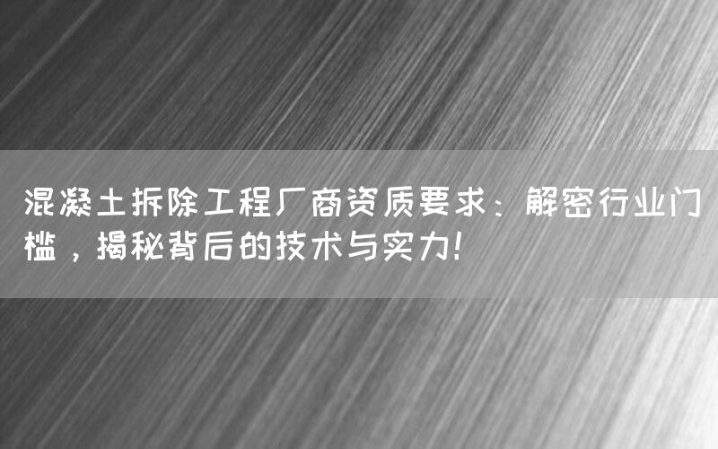 混凝土拆除工程是建筑领域中不可或缺的一项重要工作。在进行这项工程时,选择一家具备合适资质的厂商至关重要。本文将揭示混凝土拆除工程厂商资质的相关要求,从而帮助您更好地了解行业门槛和背后所需的技术实力。
