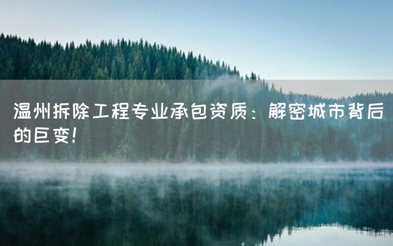 近年来,随着城市建设的不断推进和更新换代,拆除工程成为了一个重要的环节。而在这个过程中,温州作为中国经济发展的重要城市之一,在拆除工程领域也取得了显著的成就。本文将深入探讨温州拆除工程专业承包资质,并揭示其背后所蕴含的巨大变革。