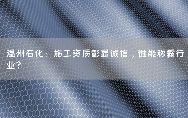 在中国的石化行业中,温州石化无疑是一家备受关注的企业。作为一家具有丰富经验和优秀施工资质的公司,温州石化在行业内树立了良好的声誉,并不断努力成为行业领导者。本文将探讨温州石化如何通过其施工资质彰显诚信,并分析谁有可能在这个竞争激烈的行业中称霸。