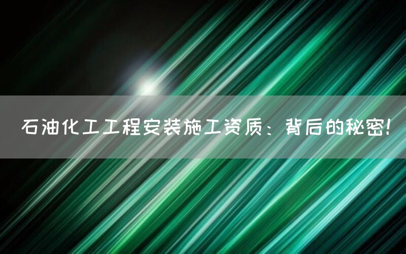 石油化工工程安装施工资质:重要性与挑战 石油化工项目涉及到大量复杂设备和技术要求,因此在安装施工环节需要具备相应的技术能力和管理水平。获得相应资质可以证明企业在这方面具备一定的实力和经验。石油化工工程安装施工涉及到大量的投资和风险。如果企业没有相应的资质,可能会面临项目延期、施工质量不达标等问题,甚至可能导致重大事故发生。政府对于石油化工项目的安装施工进行了严格监管,并规定只有具备相应资质的企业才能参与相关项目。