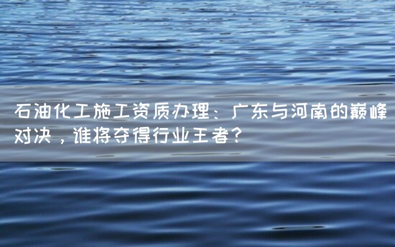 石油化工行业一直以来都是我国经济发展的重要支柱之一,而在这个行业中,拥有合法资质的企业更是备受关注。近年来,广东和河南两地成为了石油化工施工资质办理领域的竞争焦点。在这场巅峰对决中,究竟谁将夺得行业王者?本文将从多个角度进行分析。