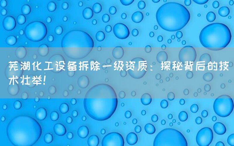 近年来,随着环保意识的提升和产业结构调整的推进,越来越多的化工企业选择进行设备拆除与更新。而在这个过程中,芜湖化工设备拆除一级资质成为了企业必不可少的条件之一。本文将深入探讨芜湖化工设备拆除一级资质背后所蕴含的技术壮举。